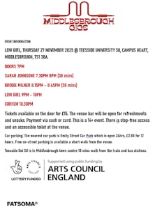 Tickets available on the door for £15. The venue bar will be open for refreshments and snacks. Payment via cash or card. This is a 14+ event. There is step-free access and an accessible toilet at the venue.