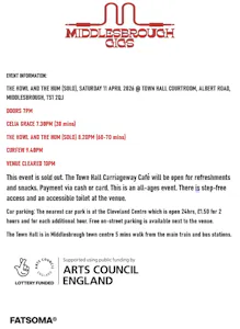 This event is sold out. The Town Hall Carriageway Café will be open for refreshments and snacks. Payment via cash or card. This is an all-ages event. There is step-free access and an accessible toilet at the venue.